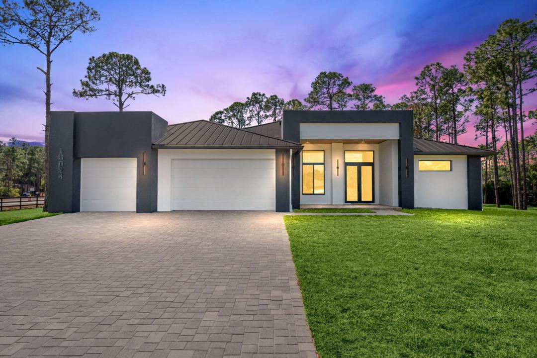 This meticulously finished 1.6 acre estate delivers luxury at every turn, blending elevated design with thoughtful functionality. From the moment you arrive, quality construction and high-end finishes are evident throughout.The home features hurricane-rated insulated garage doors and a fully finished garage with drywall and baseboards, along with smooth-finish drywall throughout and a smooth stucco exterior. Eight-foot solid-core interior doors enhance the sense of scale, while expansive 48x48 porcelain tile flows seamlessly through the living areas.The kitchen is beautifully appointed with two-tone custom cabinetry, quartz countertops, and a full quartz backsplash, creating a refined yet functional space. Custom built-in closets are found throughout the home (continue)